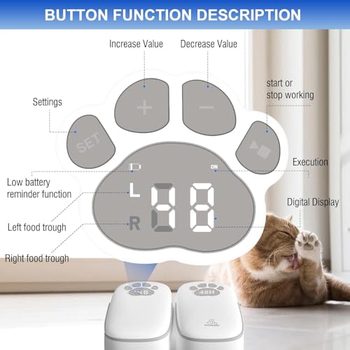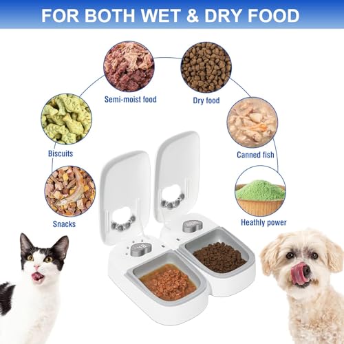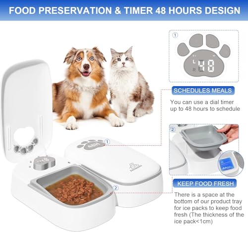 Automatic 2Meals Cat Feeder, Pet Feeder with Timer, Timed and Portion Control for Dry or Semi-moist Food, 48-Hour Timed Tamper Resistant Design (LED Cat Feeder) (48-Hour Timer)