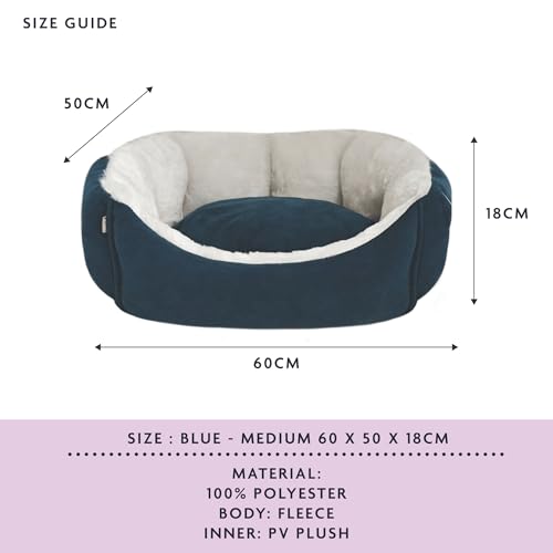 Dog Bed, Super Soft Rectangle Fleece Bed, Warm Plush Lined Warm Cosy Pet Bed with Anti-Skid Botton, Anti-Anxiety, Machine Washable, Blue, Medium, 60x50x18cm
