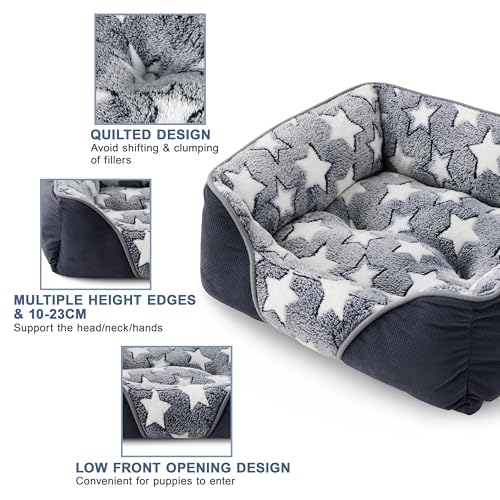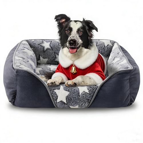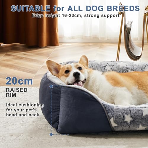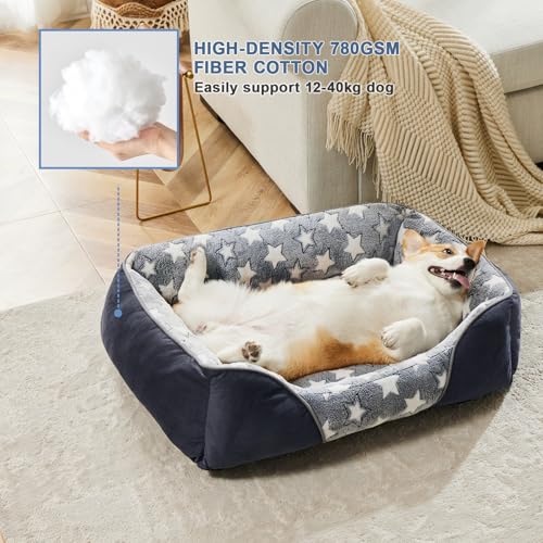 Medium Dog Bed with 20cm High Side, Dog Beds Medium Washable Dog Sofa Bed Filled with 1.3kg High-Density Cotton Easily Support 16-20Kg Corgi/Dachshund/Jack Russell, 64x53x20cm