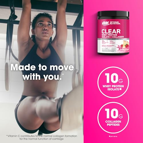 Optimum Nutrition Clear Whey + Collagen, Apple & Raspberry Flavour, 10 g Whey Isolate and 10 g Collagen per Serving, 240 g, 10 Servings