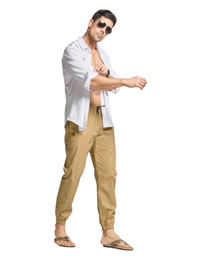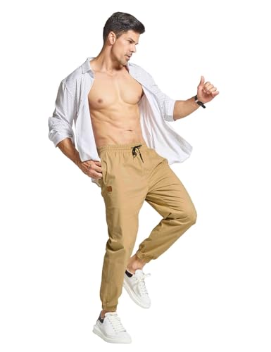 JustSun Cargo Trousers for Men Jogger Chinos Casual Sweatpants Elasticated Waist Drawstring Pants with Pockets