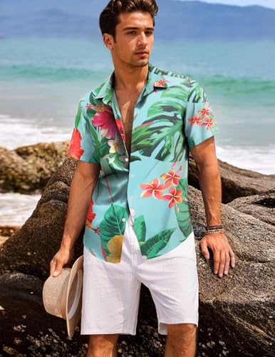 Gavliuu Hawaiian Shirt for Men – Men’s Hawaiian Button Down Shirts Floral Shirts Printed Casual Short Sleeves