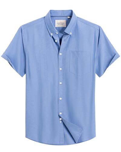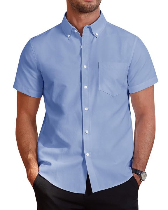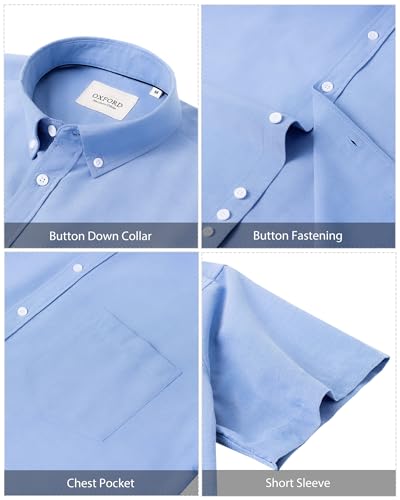 J.VER Men’s Short Sleeve Shirts Smart Casual Oxford Shirt Regular Fit Plain Button Down Cotton Shirt