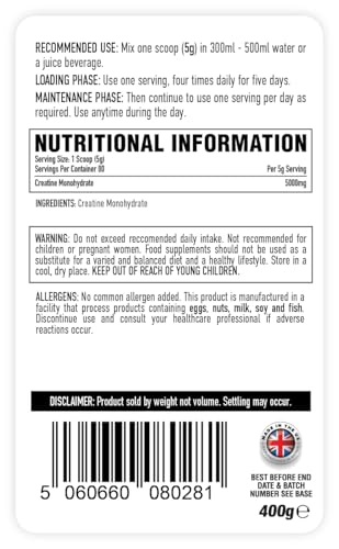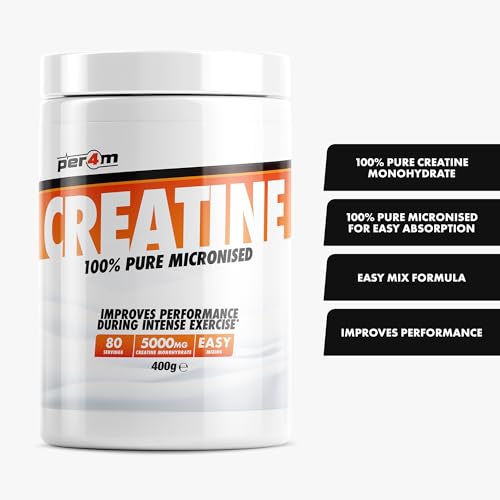 Specification: Per4m Creatine Powder | 100% Pure Micronised Creatine Monohydrate | 5000mg of Creatine | 80 Servings (400g, Unflavoured)