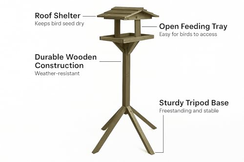 WEATHER-RESISTANT: Crafted from durable timber with a sloped roof design that protects bird feed from rain and adverse weather conditions