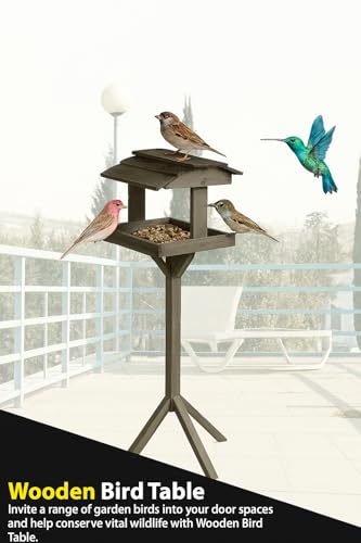 RANRHA Wooden Bird Table – 120cm Tall Freestanding Bird Feeder for Garden – Outdoor Bird Feeding Station with Roof – Sturdy Weatherproof Timber Design for Wild Birds