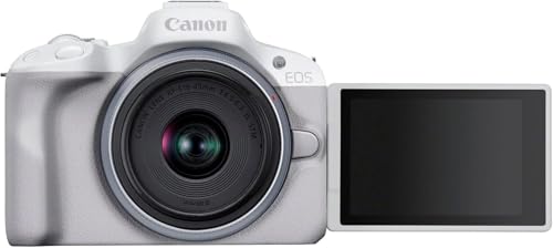 Canon EOS R50 Mirrorless Camera (White) + RF-S 18-45mm F4.5-6.3 IS STM Lens – 24.2MP, APS-C, 15fps | 4K 30p Oversampled 6K Video | Wi-Fi and Bluetooth | Compact, Portable for Travel & Vlogging