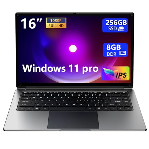 Laptop 16-inch 8GB DDR 256GB SSD Portable Laptop,Expandable to 1TB Pentium Quad-core CPU up to2.64 GHz 9000mAh Battery Mini HDMI Interface USB3.0 Interface Dual-Band WiFi Webcam Slim laptops
