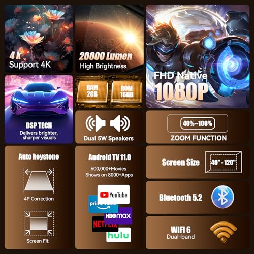 【Sealed Optical Engine Accurate Color Reproduction & Enduring Brilliance】Featuring a fully sealed optical engine with 40% higher light efficiency and an ultra-clear lens, the delivers brighter, sharper visuals with true-to-life colors for a superior viewing experience.